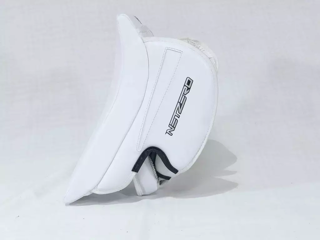 The Hand position on the NetZero Blocker is a 1” offset to top, and takes the similar construction to the G-Netik 5.0 Series. A 1-piece flare cuff adds mobility and comfort for the goalie while a standard white color is available.
