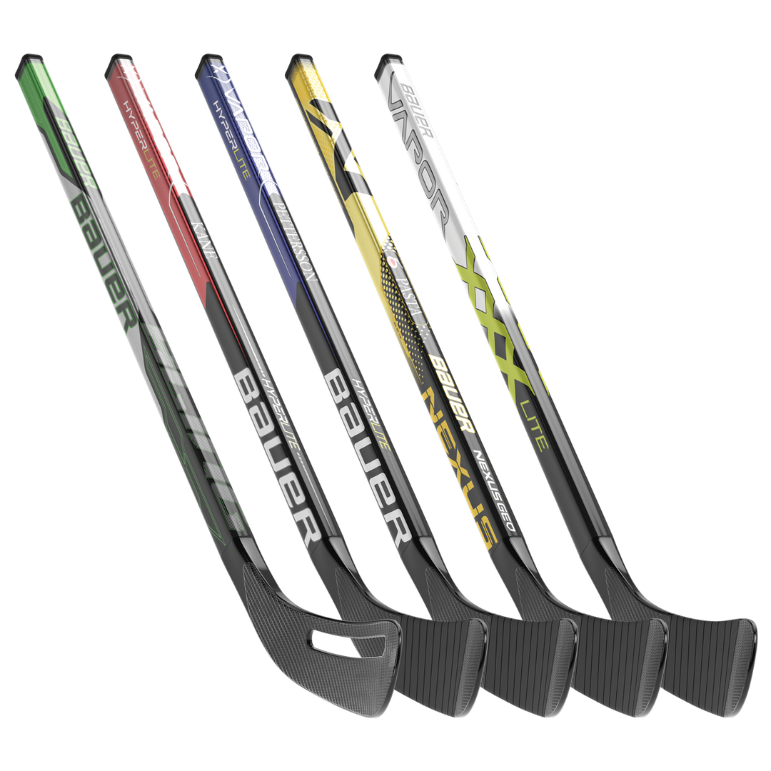 The new line of Bauer Mystery Mini Sticks have a surprise in store! Each stick is wrapped in an opaque sealed bag, which keeps the stick’s artwork hidden until opened. Unwrap one of five mystery designs with each package and try to collect them all. Knee hockey will never be the same!