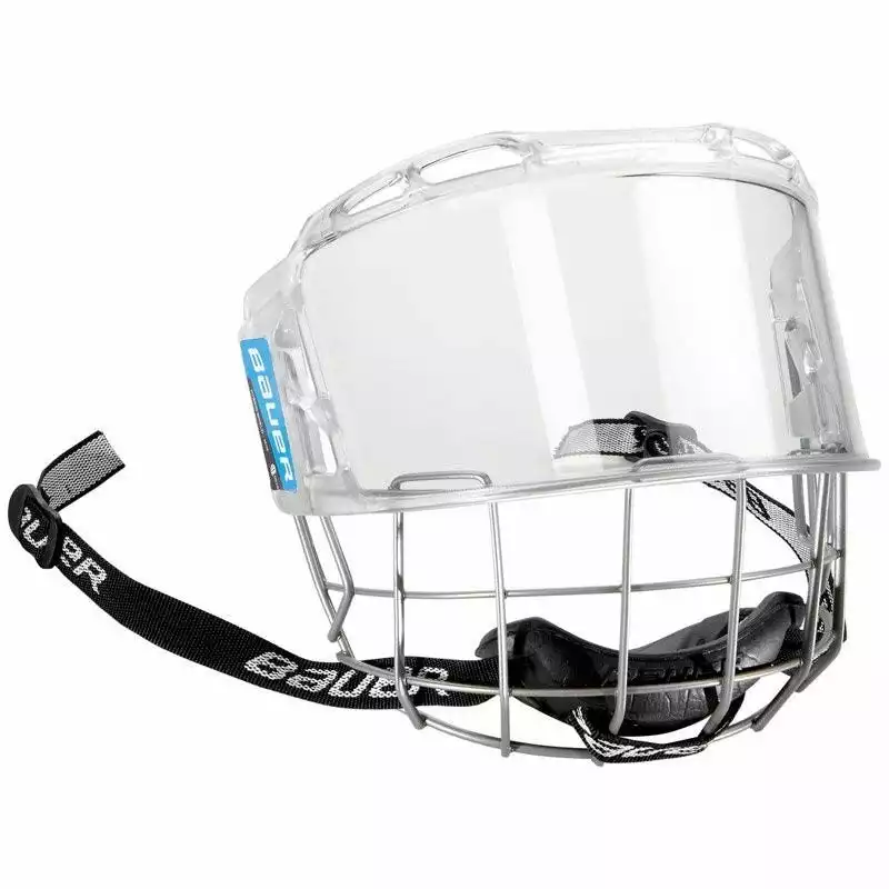 - Get the airflow of a mask with the vision of a clear shield in the BAUER hybrid shield.