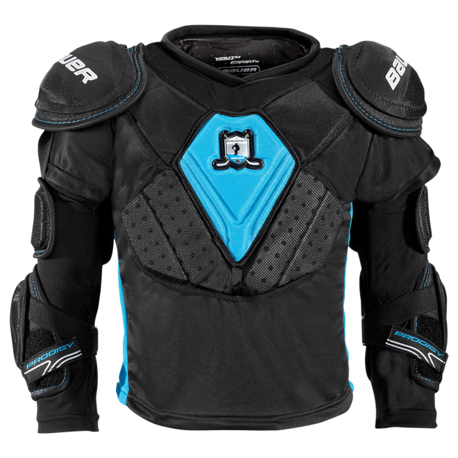 As easy to slip on as their favorite sweater, PRODIGY’s all-in-one protective top layer gives your child all the protection they need, exactly where they need it. That also means less time in the locker room and more time on the ice having fun.
