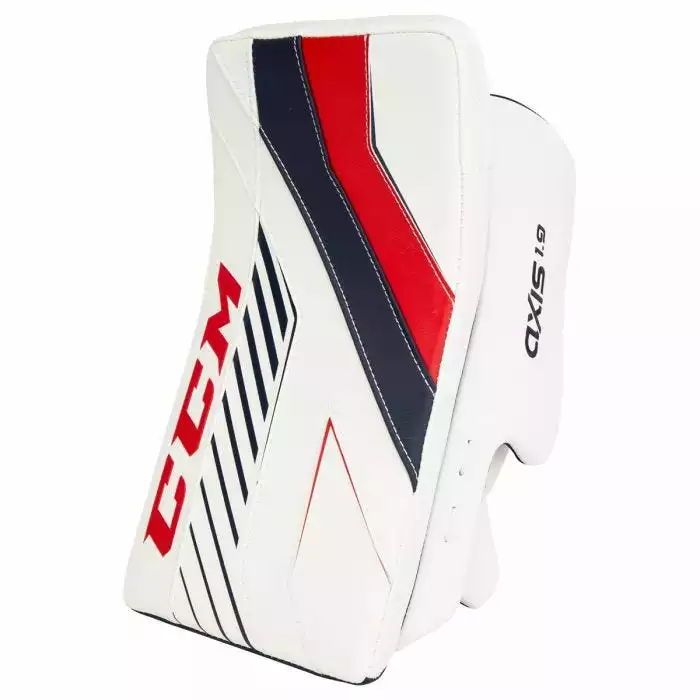 – CCM’s adjustable 3-piece cuff on the AXIS A1.9 blocker provides you with the freedom of movement that is necessary to make those difficult blocker saves a little more manageable.
