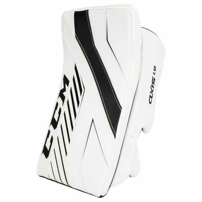 – CCM’s adjustable 3-piece cuff on the AXIS A1.9 blocker provides you with the freedom of movement that is necessary to make those difficult blocker saves a little more manageable.