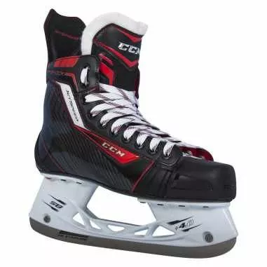 The CCM Jetspeed Shock Skates are a Source for Sports exclusive model based on the Jetspeed 270 with added upgrades as well as features taken from the Jetspeed 280 skate. The Jetspeed line focuses on a tight heel fit widen as it moves towards the forefoot with a shell designed to provide awesome comfort and durability.