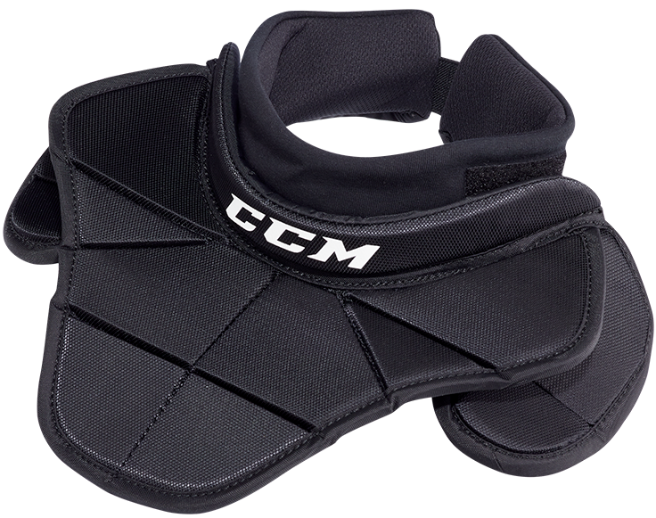 The CCM 900 Goalie Neck Guard features a new segmented design in order to allow it to sit comfortably on the neck and chest in order to reduce the risk for it to ride up or move during the game. A soft, comfortable fabric neck-piece wraps around at a comfortable height in order to protect the neck from skates, sticks and pucks.