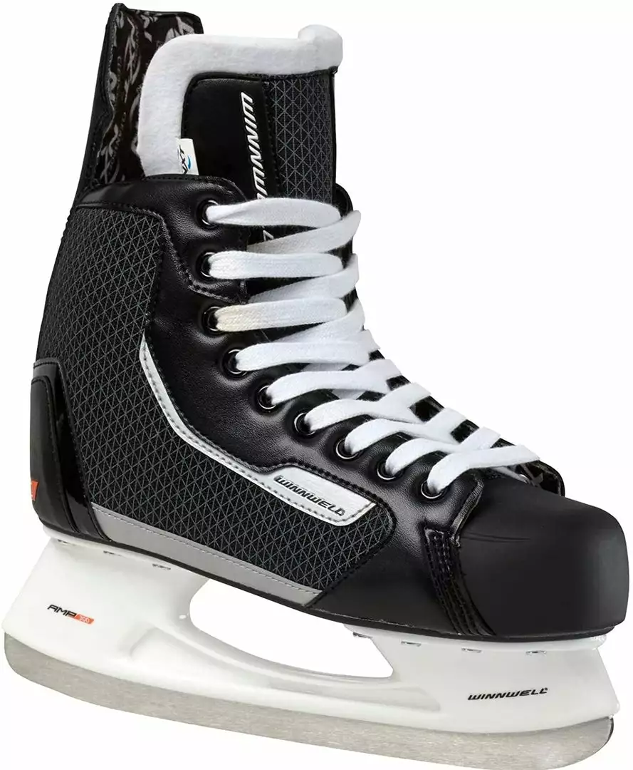 Winnwell Amp1703 recreational hockey skates. Stainless steel blades, felt tongue, Winnwell exclusive patented NXT inner liner. Super comfortable and lightweight. Get in the game, get on the ice
