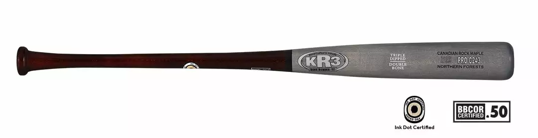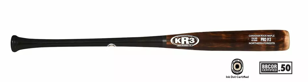 Hard maple billets are Hand Split by North America’s best quality producers to the highest baseball bat standards and from second-growth forests being regenerated each year. Their Pro Ink Dot Certified grade bats are vacuum dried and turned at low speeds from only the finest quality split stock and straight grain to increase both the hardness and maple effect. These are Double Boned for Max Hardness, Hand Sanded for the best balance and Triple Dipped to Lock In highest performing moisture ratios.Â