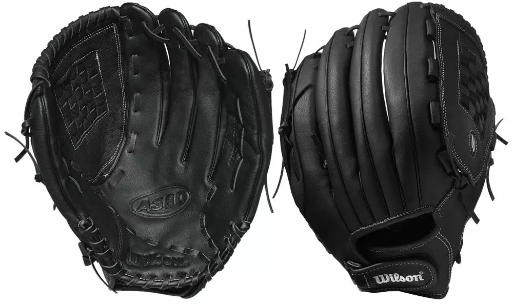 The A360 14″ is one of the most versatile gloves in the Wilson slow-pitch series. With its 14″ length and closed, V-Lace Web, this glove gives you the ability to play all over the field. It comes with a Velcro wrist strap to help you adjust its tightness to the right setting. The Wilson slow-pitch line of A360 gloves provides players with a versatile option. Gloves come with a Velcro strap to help adjust wrist tightness to the right setting.