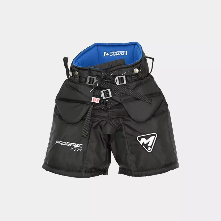 New features include a new thigh cradle stabilizer system to keep thigh pads square to shooter for maximum blocking area while providing for greater comfort and protection. New front and back mesh panels for increased venting and temperature control. Rear leg splits allow better pant fit during movements to the ice.