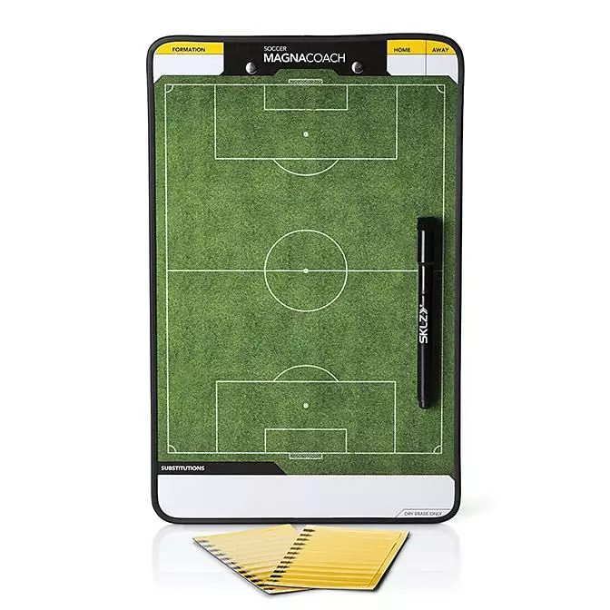 Designed to hold an entire game, the Soccer MagnaCoach magnetic, dry erase board combo lets you clearly communicate lineups, formations and tactics. This coaching board features clear space to highlight both offensive and defensive set piece responsibilities.