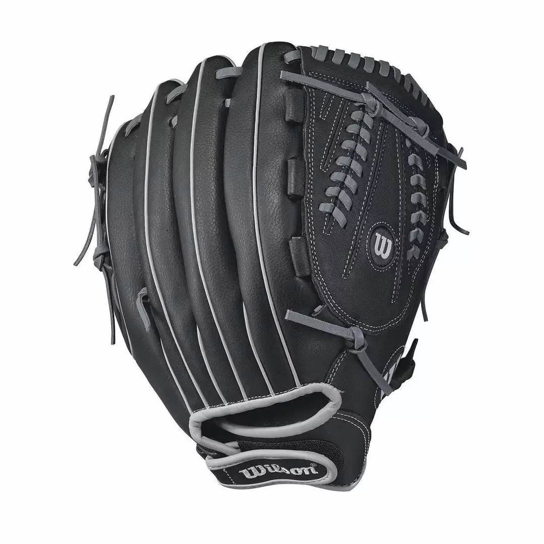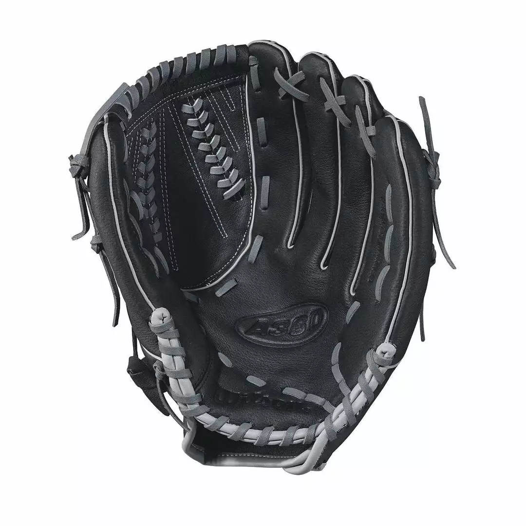 The A360 13″ is one of the most versatile gloves in the Wilson slow-pitch series. With its 13″ length and closed, V-Lace Web, this glove gives you the ability to play all over the field. It comes with a Velcro wrist strap to help you adjust its tightness to the right setting. The Wilson slow-pitch line of A360 gloves provides players with a versatile option. Gloves come with a Velcro strap to help adjust wrist tightness to the right setting.